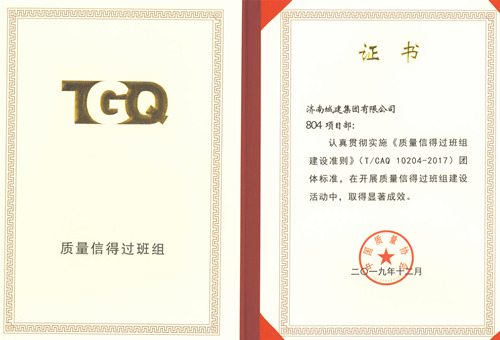 集團804項目部榮獲中國質(zhì)量協(xié)會“質(zhì)量信得過班組”