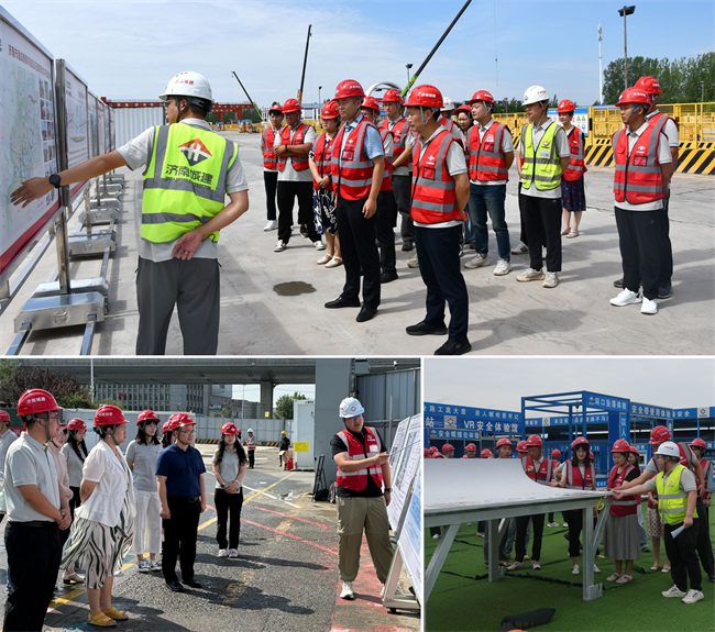 “理論宣講進(jìn)項目”系列活動在實地觀摩施工一線中拉開序幕。與會人員分別深入濟(jì)南城市軌道交通7號線一期工程、起步區(qū)黃河體育中心游泳館及全民健身中心項目和黃崗路穿黃隧道項目現(xiàn)場,直觀感受科技創(chuàng)新、智慧建造和攻堅精神。在塔吊林立的工地,理論宣講與火熱實踐緊密交織,進(jìn)一步激發(fā)青年職工積極進(jìn)取、拼搏奉獻(xiàn)的奮斗熱情。